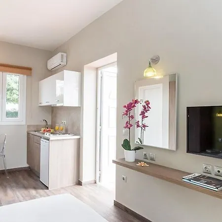 Kato Lagadi Beach ist innerhalb von ungefähr 10 Minuten mit dem Auto leicht erreichbar. Zum Stadtzentrum von Skala sind es nur 30 Gehminuten.
